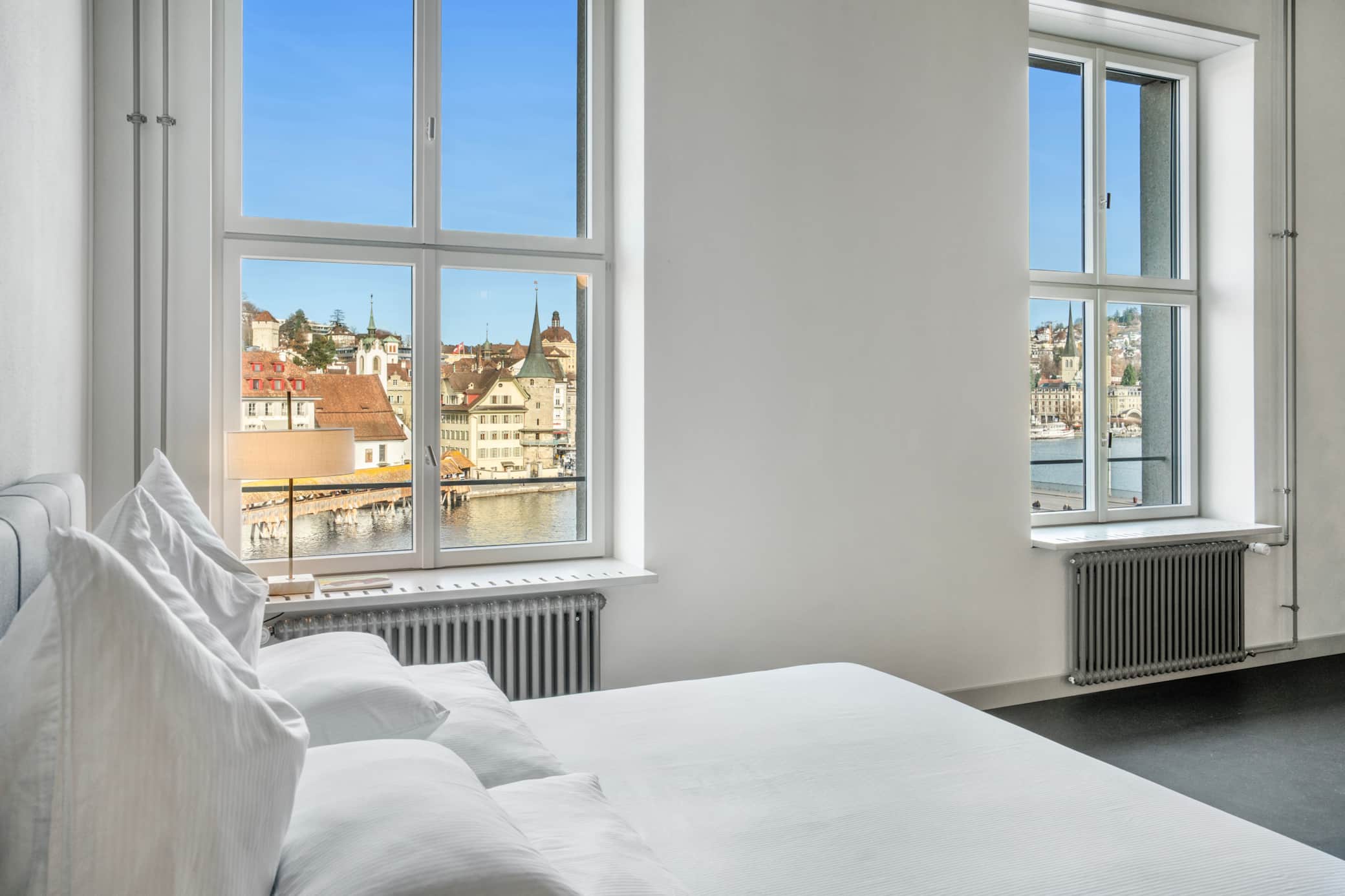 Wake up with the Chapel Bridge at your window, and fall asleep in the quiet magic of Lucerne’s night lights. Breathtaking views that make you feel on top of the world. This loft is designed for calm guests seeking a unique and very private stay.